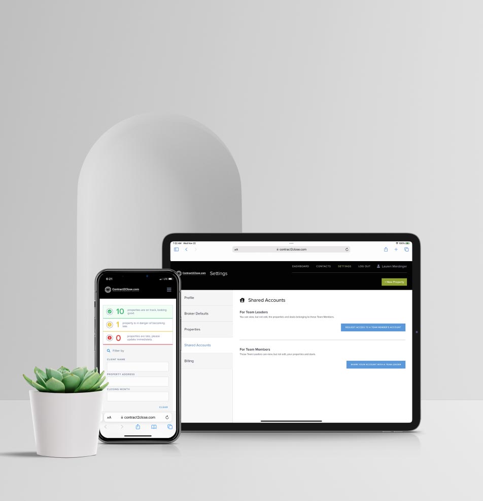 Missed deadlines can be costly in the real estate business. Contract2Close.com is your steadfast partner, ensuring you meet every milestone, every time. We’re dedicated to getting you from “Contract to Close” without a hitch.