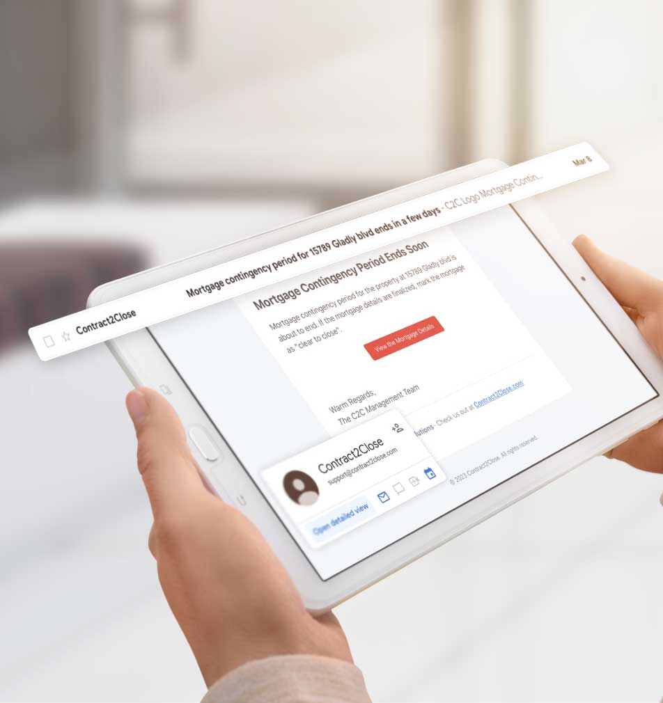 Real estate transactions involve multiple components and participants, each with their own deadlines. Juggling these critical dates for various transactions can be exhausting. That’s where Contract2Close comes to the rescue.